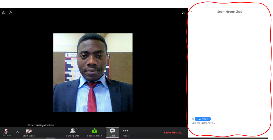 5 – The Chat button – The chat group allows you to Send a message to Everyone, the lecturer only or to a specific student.