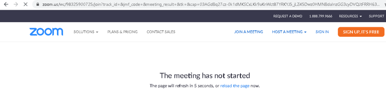 Note: Do not close the page, as the page will refresh until the meeting has been started by the host (lecturer).