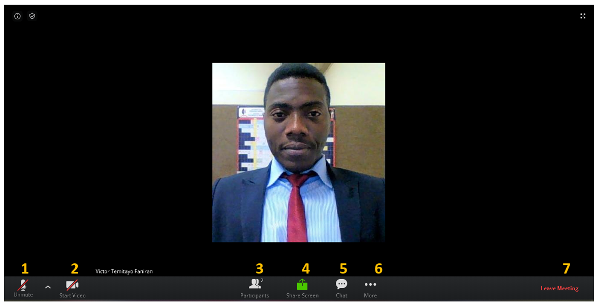 6 – More button – May contain other specific actions that can be performed by the participant (student) depending on how the lecturer configures the Zoom session. Sometimes this “more” button may not be shown if the window is maximised.