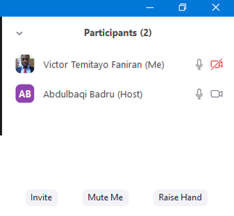 3 – The Participants button – This enables you to view all the people present in the Zoom session. It also contains icons that allow you to notify the host (lecturer) e.g. yes, no, go slower, go faster, away, clap, raise hand (this notifies the lecturer that your hand is raised which may signify that you want to ask or answer a question).