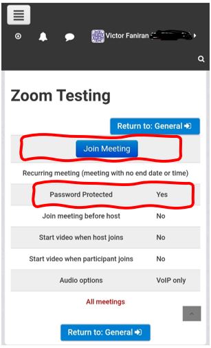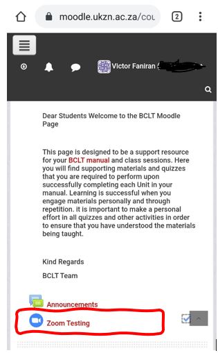 - Click My Courses (Top Left), Select the Course you wish to join its Zoom session.
