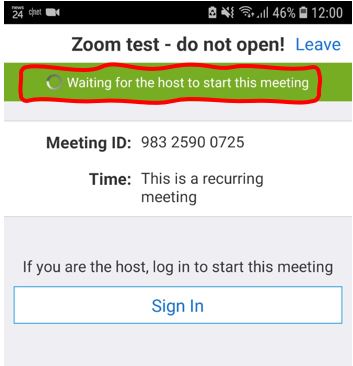 7 – The Zoom button – Click to show detailed information of the ongoing Zoom session.