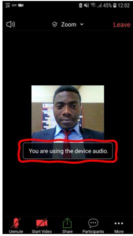 b) After clicking the Call Via Device Audio button, you should get the notification below.